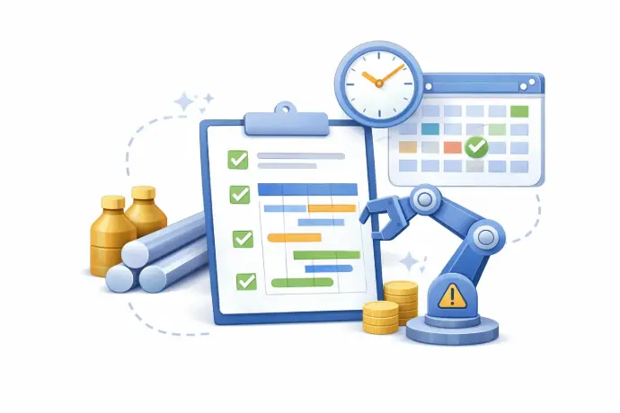 Materialbedarf, Arbeitsabläufe und Termine werden zentral geplant. Änderungen lassen sich schnell berücksichtigen, sodass Ihre Produktion zuverlässig und planbar bleibt.