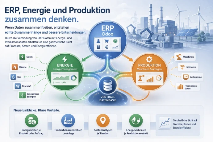 Für viele Unternehmen ist nicht ein vollständiger Ersatz von Odoo notwendig, sondern eine gezielte Ergänzung – insbesondere im Bereich Datenanalyse und Energiemanagement.
